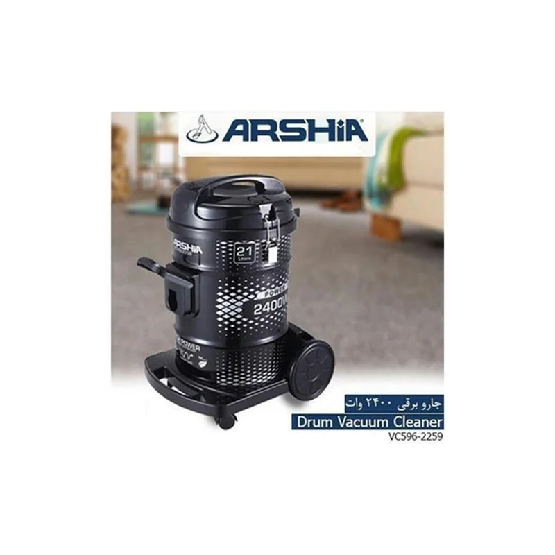 جارو برقی عرشیا مدل VC596-2259 دارای طراحی بدنه زیبا و موتوری پر قدرت میباشد. توان موتور این جارو برقی 2400 وات بوده که علاوه بر قدرت بالا ، صدای کمی تولید می نماید. گنجایش مخزن جارو برقی 21 لیتر با نشانگر گرد و غبار است . جنس بدنه این دستگاه فلزی محکم و داراری لوله تلسکوپی می باشد. این دستگاه برای جارو نمودن فرش، کف سخت، دیوار، سقف، مبل، پرده و تخت استفاده میشود.