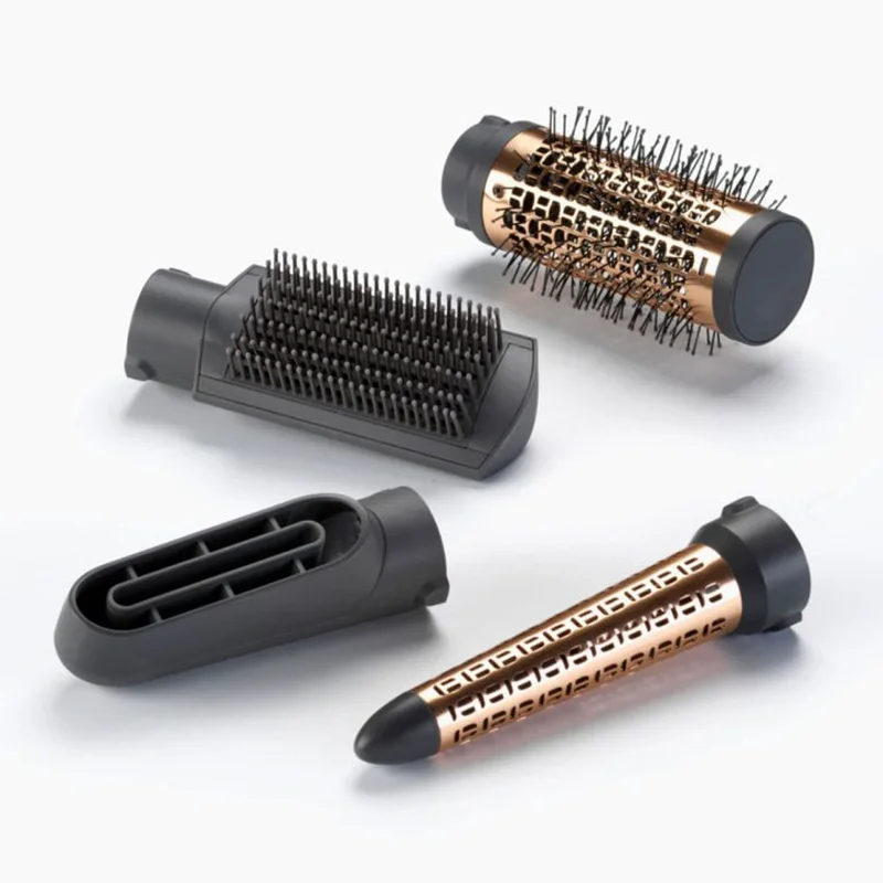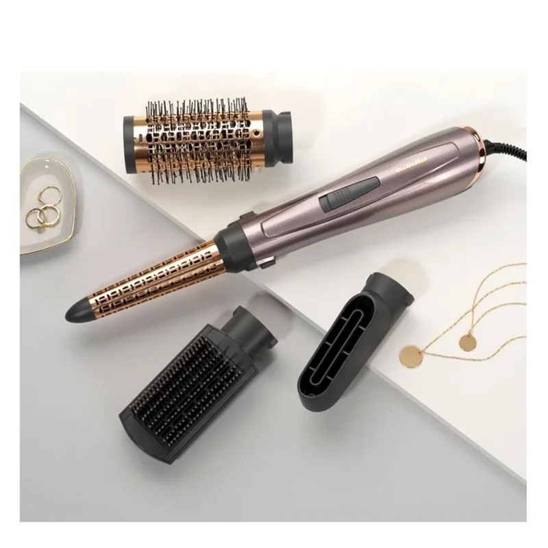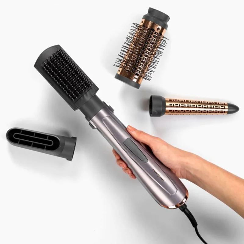 طراحی جمع و جور و ارگونومیک آن، حمل راحت و ذخیره سازی آسان را تضمین می کند و آن را به یک انتخاب ایده آل برای استفاده در خانه یا مسافرت تبدیل می کند.این محصول دارای برس حرارتی حجم دهنده 50 میلی متری برای افزودن پری و فرم، اتصال مخروطی شکل برای ایجاد فرهای نرم و امواج، برس خشک کن با حجم کامل موها را کنترل و صاف می کند تا ظاهری براق و براق داشته باشند و نازل خشک کن برای از بین بردن رطوبت، می باشد