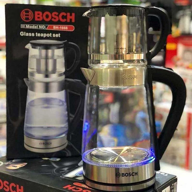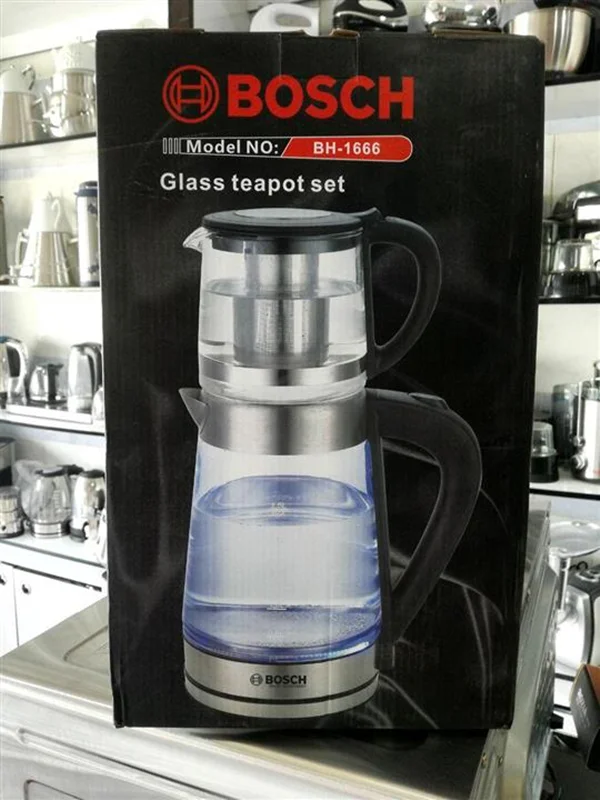 چایساز بوش مدل «BH-1666» یکی از زیباترین چایسازهای عرضهشده در بازار است. این محصول از سه قسمت تشکیلشده است. قسمت پایینی یا پایه است که برق متصل میشود. این پایه این امکان را ایجاد میکند که کتری روی آن بتواند در هر جهتی بچرخد و محدودیتی وجود نداشته باشد.کتری در محل مخزن آب شفاف است و میزان آب در آن مشخص است. این قسمت درجهبندی نیز شده تا حجم آب مشخص شود. دستگیره از جنس مرغوبی تهیهشده است که به دست بهخوبی محکم میشود و نمیلغزد. روی کتری، قوری قرار میگیرد که شیشهای است و دستگیره و در آن از جنس پلاستیک است. داخل قوری صافی فلزی قرار دارد که مانع از ورود برگ چای به لیوان و استکان میشود.