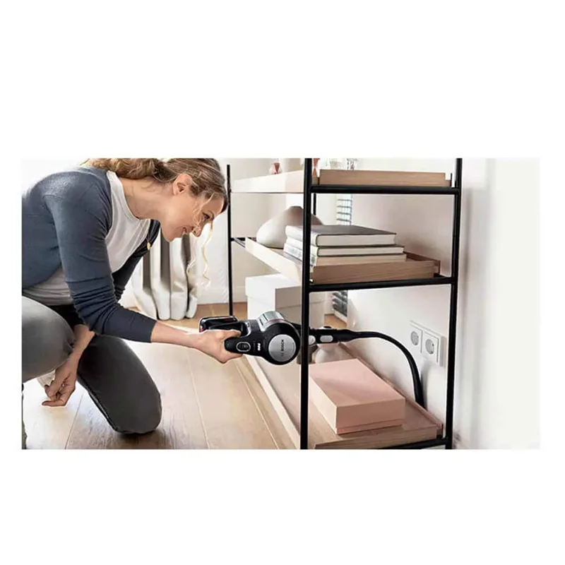 قابلیت ویژه ای که شرکت بوش در طراحی بدنه محصول به کار گرفته حالت تاشوندگی لوله آن است. شما برای جارو کردن و تمیزی مناطقی مثل زیر مبل نیازی به خم شدن ندارید و فقط کافیست با فشردن یک دکمه لوله را تا 90 درجه خم کنید.