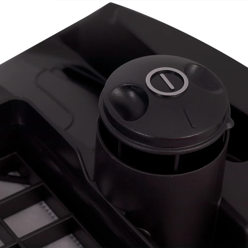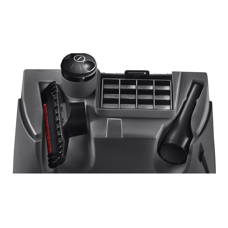 این دستگاه دارای فیلتر بهداشتی بوده که مانع از ورود گرد و غبار به محیط میشود. توسط ولوم چرخشی روی پنل میتوان دستگاه را روشن و خاموش نمود همچنین با چرخش ولوم ، قدرت مکش آن را تنظیم کرد. 3 چرخ با قابلیت چرخش 360 درجه در زیر دستگاه تعبیه شده که موجب حرکت روان و آسان جارو برقی بر روی سطوح میشود.