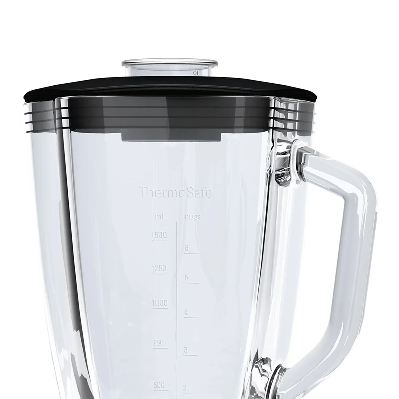 پارچ دستگاه از جنس شیشه Thermo Safe طراحی شده و نسبت به تغییرات دما هیچ واکنشی نشان نمیدهد. در نتیجه می توان انواع نوشیدنی های سرد ، گرم ، سوپ و … را بدون نگرانی درون دستگاه مخلوط نمایید.برای مخلوط نمودن یک دست انواع نوشیدنی و مواد غذایی یک اهرم همراه با دستگاه ارائه شده که با قرار دادن درون مخلوط کن انواع مواد نوشیدنی و مواد غذایی به صورت یکدست مخلوط میگردند.