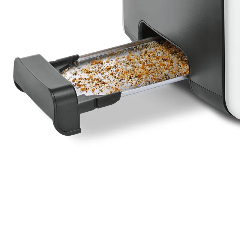 توستر 6A111 بر روی پنل خود دارای یک ولوم چرخشی برای تنظیم حرارت در 6 درجه و کلید های یخ زدایی و توقف عملیات میباشد. توسط عملکرد یخ زدایی میتوانید نان ها را به محض خروج از فریزر درون دستگاه قرار دهید و پس از یخ زدایی ، توسط درجه حرارت دلخواه ، برشته نمایید .