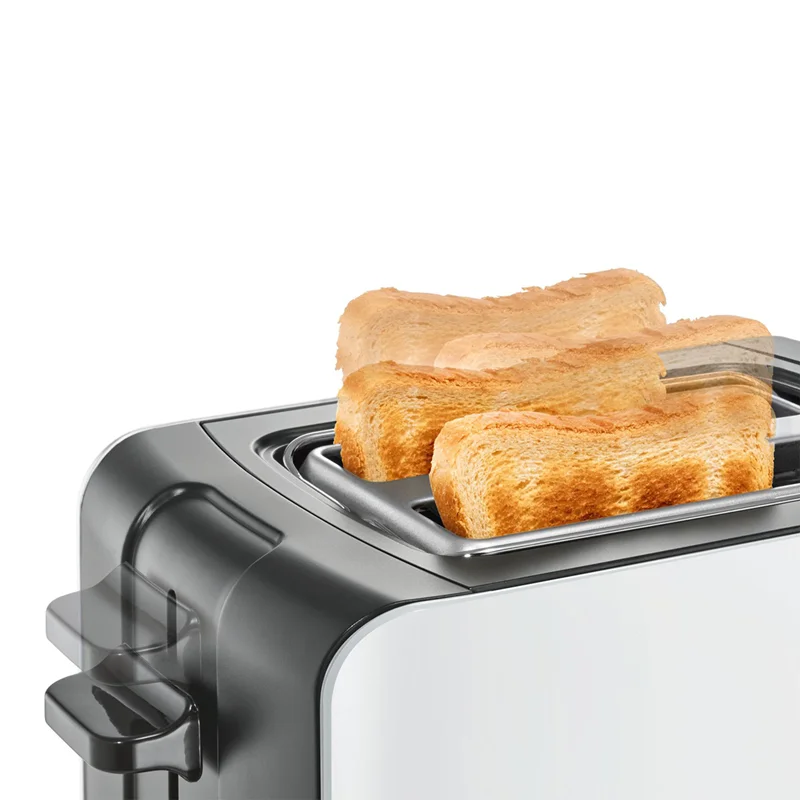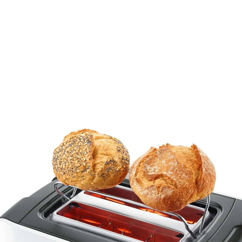 توستر بوش BOSCH مدل TAT6A111 با حداکثر توان 1090 وات ، دارای بدنه ای از جنس پلاستیک مقاوم و به صورت عایق حرارت میباشد. در این دستگاه دو جایگاه برای قرار گیری نان تعبیه شده است . توسط توستر بوش میتوان نان های درون منزل را به صورت تازه و برشته میل نمایید.