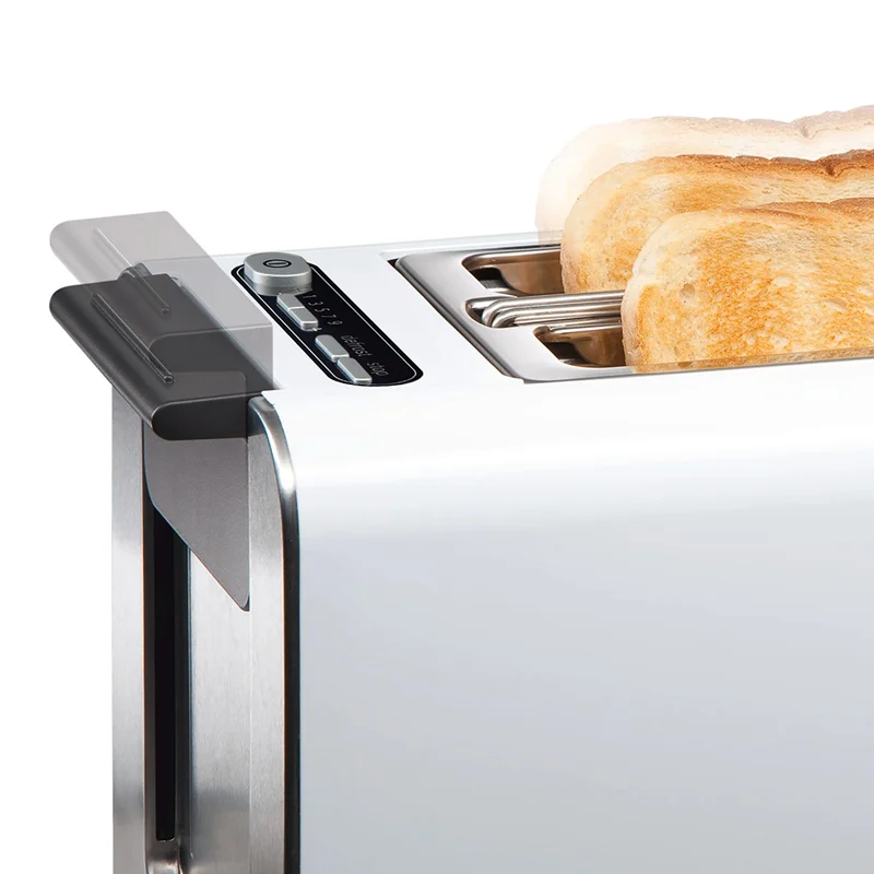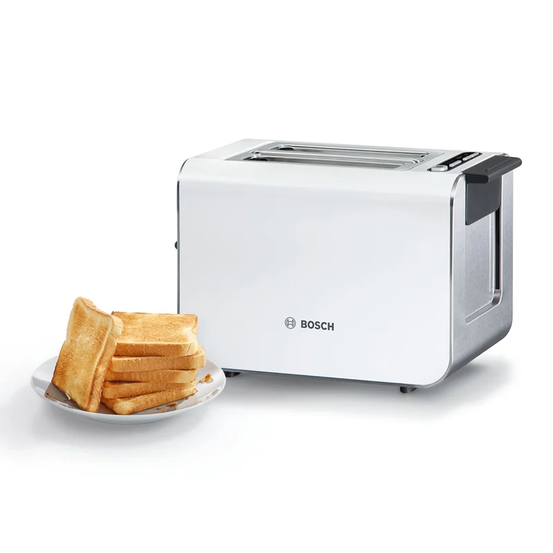توستر بوش BOSCH مدل TAT8611 با توان 860 وات و ظاهری بسیار شکیل ، جلوه زیبایی به آشپزخانه شما میبخشد. توسط توستر بوش میتوانید نان های داخل یخچال را به صورت تازه و برشته میل نمایید که این ویژگی از اصراف نان جلوگیری میکند. توستر 8611 دارای سیستم گرمایش Mirroheating بوده که موجب توزیع گرما در تمام نقاط نان به صورت یکسان میشود.