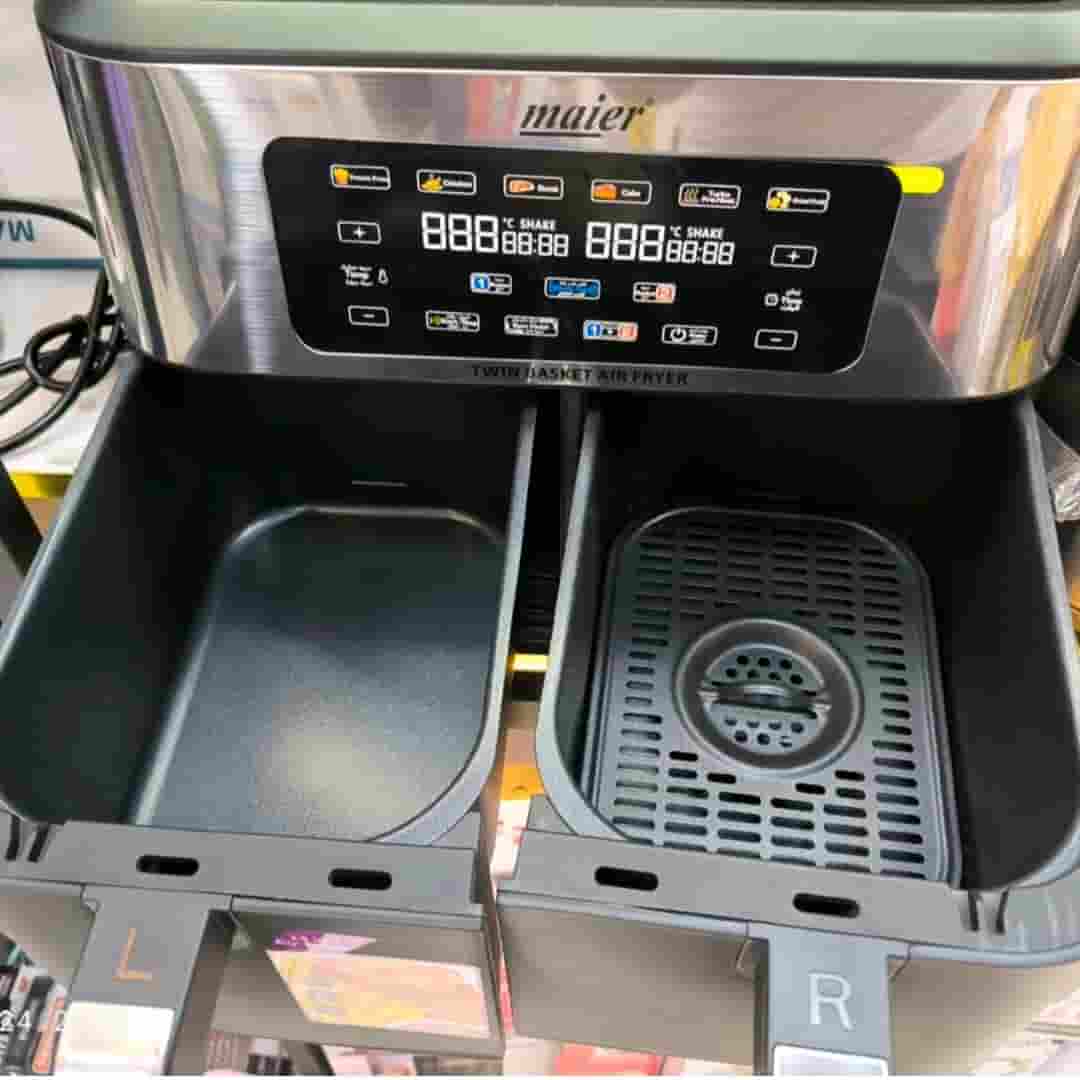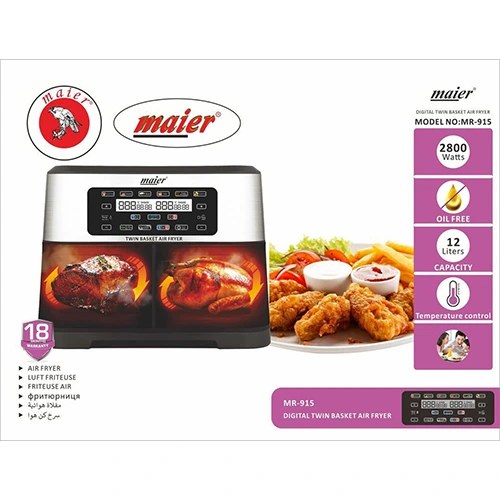 سرخ کن دوقلو مایر مدل MR-915 با توان 2800 وات و ظرفیت 12 لیتر، انتخابی ایدهآل برای خانوادههای پرجمعیت و علاقهمندان به غذای سالم و کمچرب است. این دستگاه با ترکیب بدنهای از پلاستیک مرغوب و استیل ضد زنگ، علاوه بر دوام بالا، ظاهری مدرن و شیک دارد. کاسهی تفلون نچسب آن از چسبیدن مواد غذایی جلوگیری کرده و شستوشو را آسان میکند. همچنین، صفحه نمایش دیجیتال لمسی امکان تنظیم 6 برنامه پخت متنوع را فراهم کرده و سیستم قطع خودکار و هشدار پایان پخت، ایمنی و راحتی کار را افزایش میدهد.