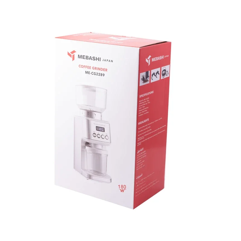 آسیاب قهوه مباشی مدل ME-CG 2289 تحولی جدی در تولید آسیاب در این شرکت است زیرا تمام مشخصات مورد نیاز برای یک آسیاب خوب را داراست. در این آسیاب تیغه ی مخروطی طراحی شده است. تیغه های مخروطی بیشترین دقت در سرعت های پایین را دارا هستند و خصوصا در مقیاس های خانگی قهوه را داغ نکرده و از شروع آسیاب تا انتهای آن سایز پودر یکسان است همچنین حداقل صدای مورد انتظار از یک آسیاب را از آن میتوانید بشنوید.