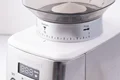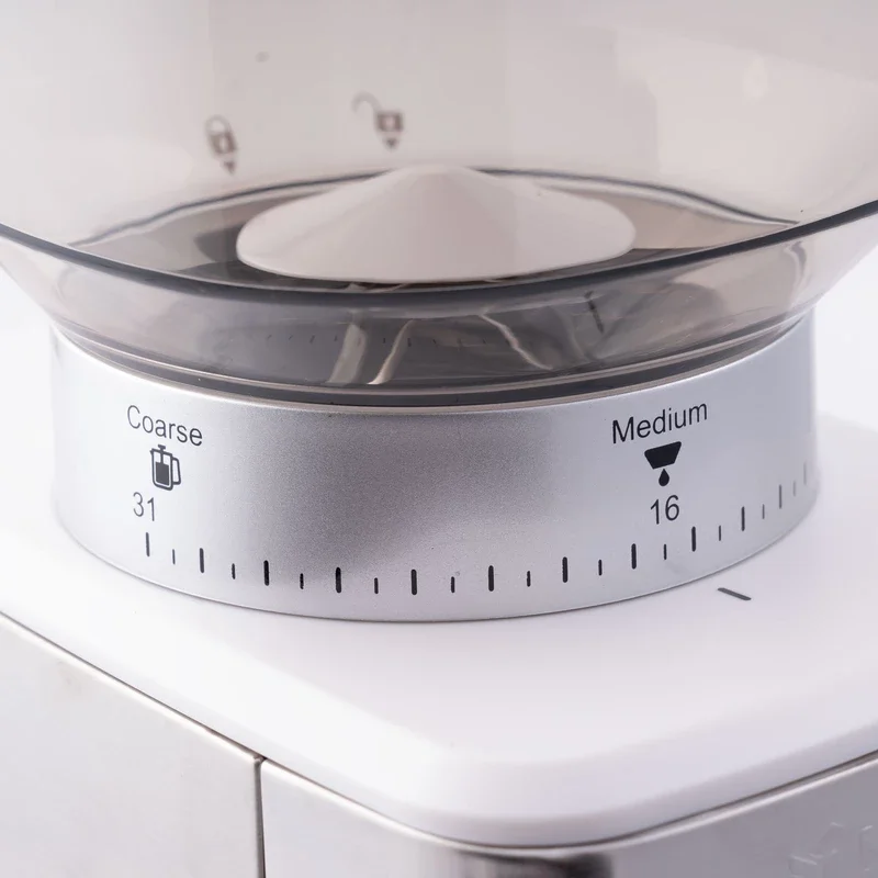 نکته بعد پرتابل بودن تیغه ی مدور این اسیاب و امکان خارج کردن آن و برای تمیز کردن آن است، به این صورت که با باز کردن هاپر (مخزن قهوه) با کشیدن دسته ی متصل به تیغه ی مدور که دور تیغه ی مخروطی قرار دارد، به راحتی میتوانید آنرا جدا کنید. این قابلیت پاکسازی آسیاب را بسیار ساده میکند و نیازی به باز کردن دستگاه برای تمیز کردن تیغه ها نیست. خصوصیت مهم دیگر این آسیاب، صفحه نمایش و برد 4 دکمه، جهت تنظیم تایم آسیاب به صورت برنامه ریزی شده جلوی دستگاه تعبیه شده تا از این دستگاه به صورت اتوماتیک بتوانید استفاده کنید.