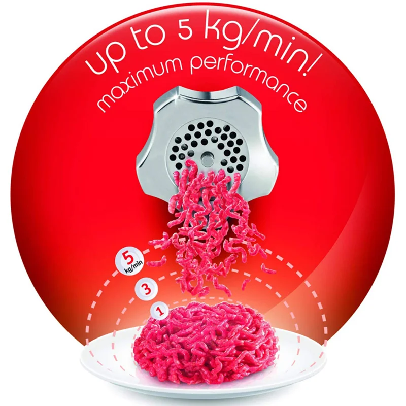 چرخ گوشت Moulinex MM 74 دارای 3 شبکه از جنس استیل در سایزهای ریز، متوسط و درشت است که برای چرخ کردن گوشت و انواع مواد غذایی مناسب می باشد. این دستگاه به سینی استیل مقاوم جهت قرار دادن گوشت ها مجهز گردیده که قابل جدا شدن و شستشو خواهد بود. همچنین به کمک قطعات جانبی سوسیس ساز و کبه ساز، می توان به راحتی کبه ها و سوسیس های کاملا بهداشتی و سالمی را تهیه کرد.