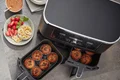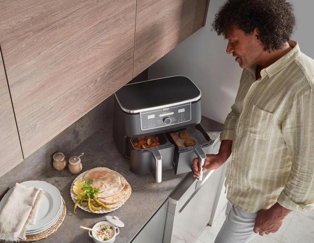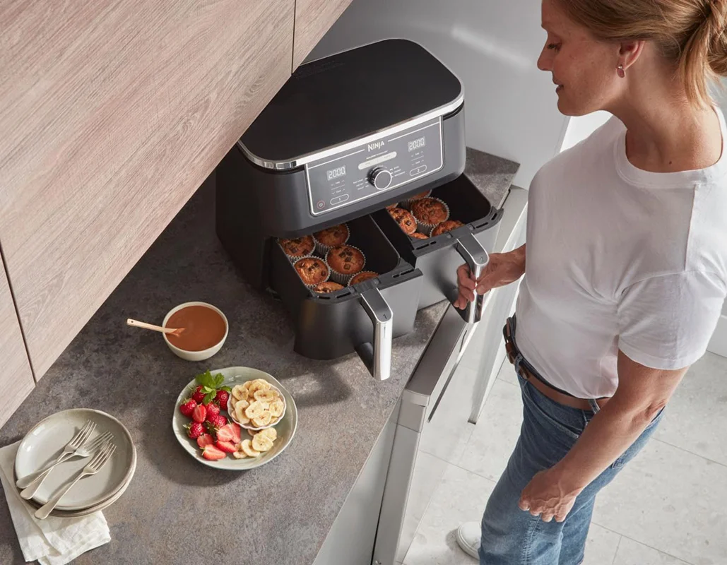 سرخ کن نینجا (NINJA) مدل AF400 یک سرخ کن دو قلو است. این دستگاه دارای دو مخزن و دو سبد پخت مجزا از یکدیگر است و این امکان را برای شما فراهم می کند تا شما مواد غذایی مختلف با زمان پختهای مختلف را به صورت هم زمان داخل دستگاه بگذارید. هر یک از این سبدها 4.75 لیتر و به طور کلی سرخ کن AF400 نینجا9.5 لیتر گنجایش برای پخت مواد غذایی دارد. لازم به ذکر است که ظروف پخت به صورت کامل قابل جدا شدن و شستشو هستند.