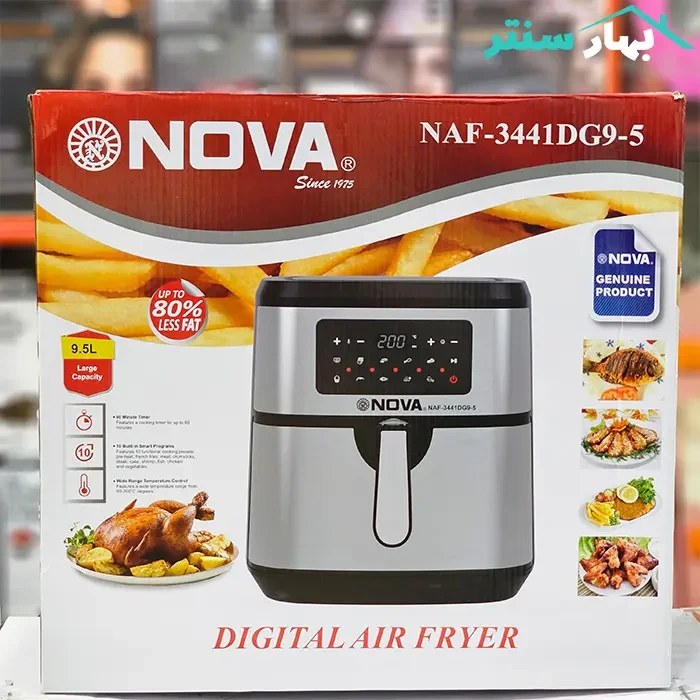 9.5 لیتر ظرفیت – با 9.5 لیتر ظرفیت به راحتی یک خانواده 10 تا 12 نفره را تغذیه می کند و یک سبد پخت و پز نچسب و سینی برای تمیز کردن ساده دارد. سبد و سینی آشپزی با روکش نچسب برای تمیز کردن آسان در ماشین ظرفشویی قابل شستشو هستند. با طراحی کم مصرف NOVA مصرف برق خود را تا 55 درصد کاهش دهید که هزینه انرژی شما را کاهش می دهد.