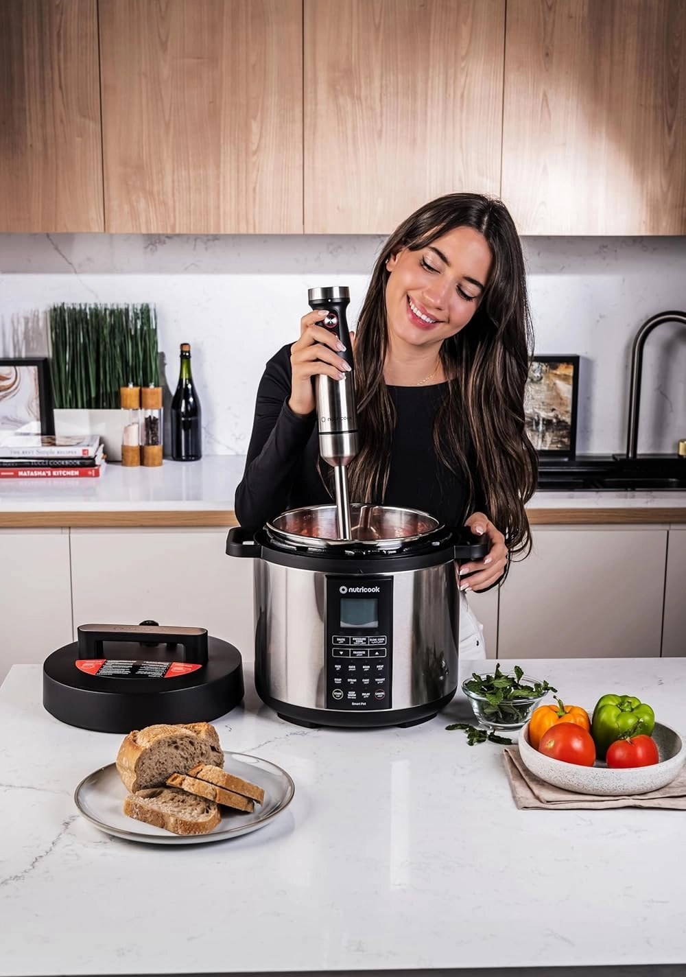گوشت کوب برقی نوتریکوک چند کاره مدل HB100 دستگاه آماده سازی مواد غذایی با توان بالای 1200W بوده که جزو جدیدترین محصولات کمپانی امریکایی nutricook میباشد. این مجموعه کاربردی با امکانات خردکن، مخلوط کن دستی(گوشتکوب)، همزن بالونی و سری فوم ساز، دارای عملکردهای محدود اما کاربردی و روزمره است. استفاده از بدنه استیل و پلاستیک در ساختار اصلی دستگاه، استحکام و ماندگاری دستگاه را بسیار بالاتر برده و همچنین در هنگام کار با خیال راحت تری مواد سخت را ترکیب میکنید.