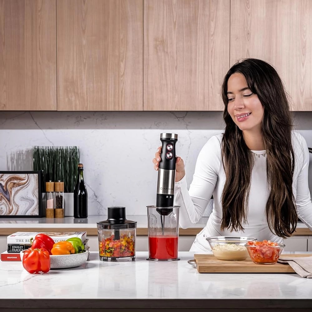 آماده سازی خامه، خرد کردن سبزیجات یا گوشت، تهیه فوم شیر، تهیه انواع اسموتی، شیک و نوشیدنیهای مختلف ترکیبی، تنها با استفاده از گوشت کوب برقی نوتریکوک مدل 100 امکان پذیر است. توان بالای موتور تاثیر مستقیم بر سرعت عملکرد و قدرت ترکیب یکدست را دارد و موتور 1200W جزو سطوح بالای قدرتی در میان انواع گوشت کوب برقی محسوب میشود. تعبیه دو سرعت متفاوت در قسمت دستیگره دستگاه، کمک میکند تا متناسب با سختی یا نرمی مواد غذایی، سرعت را انتخاب کرده تا بافت نهایی یکپارچه تر شود.