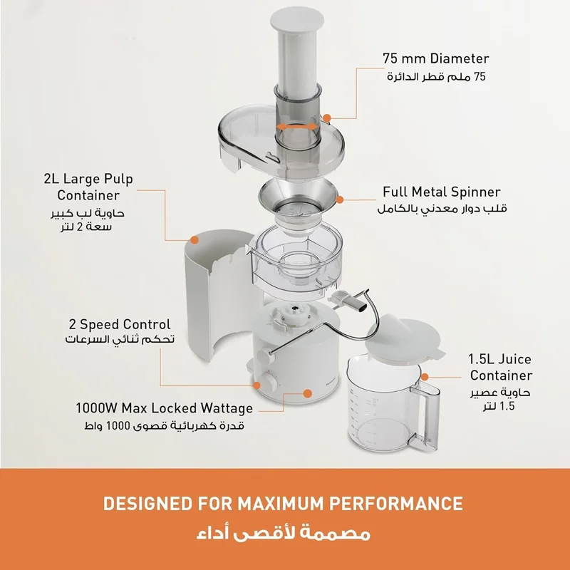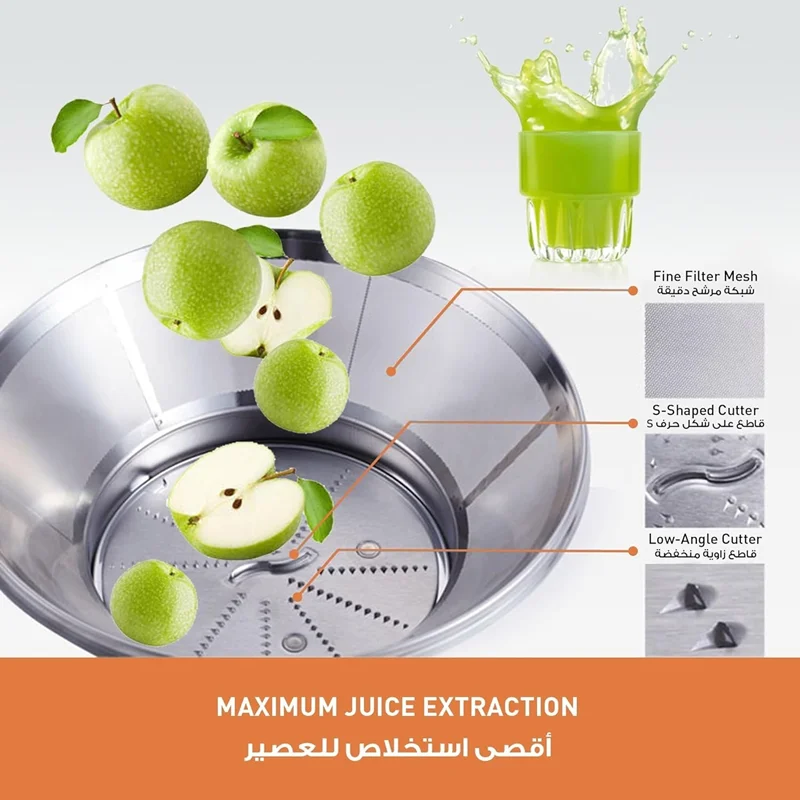 این آبمیوه گیری با استفاده از تکنولوژیهای پیشرفته و قدرت موتور بالا، به راحتی میوهها و سبزیجات را خرد و تبدیل به آبمیوه تازه و خالص میکند. همچنین، با داشتن فیلترهای قابل شستشو، تمیز کردن و نگهداری این دستگاه بسیار آسان است. علاوه بر این، طراحی زیبا و جذاب این آبمیوه گیری، آن را به یک انتخاب عالی برای استفاده در آشپزخانه خانهها و رستورانها تبدیل کرده است.