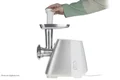 چرخگوشت «فیلیپس» مدل «HR2723/20» یکی از دستگاههای قدرتمند و کاربردی ساخت این شرکت است. این چرخگوشت با موتور 1800وات خود، از قدرت چرخکردن حداکثر 2.3 کیلوگرم گوشت در دقیقه بهره میبرد. سه دیسک استیل برای چرخکردن گوشت در اندازههای مختلف در نظر گرفته شده است. با وجود این دیسکها دستگاه قادر است گوشت را با قطر سه، پنج و هشت میلیمتر برای تهیهی غذاهای گوناگون آمادهی استفاده کند. با استفاده از سه استوانهی مخصوص، دستگاه HR2723/20 قادر به برشدهی سبزیجات به اشکال و اندازههای مختلف است. دو استوانه با سوراخهای رندهایشکل کوچک و بزرگ و یک استوانه با شیار چیپسیشکل برای این چرخگوشت در نظر گرفته شده است. وجود قیفهای مخصوص تهیهی سوسیس هم میتواند امکانی کاربردی باشد تا تنوع غذایی افراد زیاد شود. این قیفها در دو اندازهی مختلف هستند و استفاده از آنها شما را از سلامت سوسیس مصرفیتان مطمئن میکند. برخورداری از سری کبهساز نیز از مزایای این چرخگوشت است. این دستگاه به قطعهی مخصوص نظافت سری چرخگوشت مجهز است که با طراحی نوآورانه، زدودن ذرات گوشت از دیسک فلزی را بسیار آسان کرده است و موجب صرفهجویی در وقت و انرژی شما خواهد شد. با فنآوری 3D ProBlend 6 تیغه 6 پر در سه جهت بالا، میانی، پایین و طراحی منحصر بفرد قرار گرفتن آن خارج از مرکز، مواد را تا میزان 50 درصد ریز تر خرد کرده و پروسه مخلوط انواع مواد غذایی را برای کاربر بهینه میکند. با این تکنولوژی تمام مواد مغذی موجود در میوه ها ،سبزیجات و آجیل ها به راحتی توسط بدن جذب میشوند.