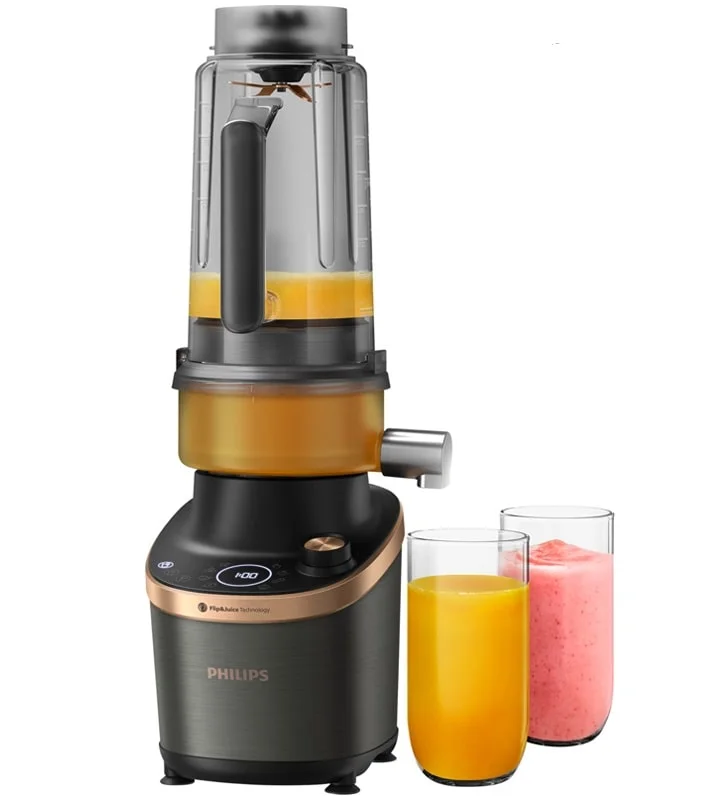 با تلفیق توانایی های مخلوط کردن و آبمیوه گیری دیگر نیازی به دو دستگاه مجزا نبوده و فضای کمتری از آشپزخانه شما اشغال می گردد.فیلیپس HR3770 دارای یک تیغه دندانه دار برای خرد و مخلوط کردن موارد سفت و سخت بوده . و دیگر تیغه ی آن با داشتن لبه های تیز و برنده برای قطع کردن و برش های دلخواهتان, کار آشپزخانه شما را بسیار آسان می کند.