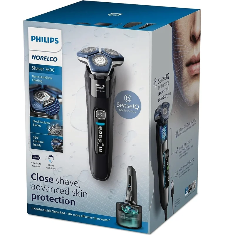 ریش تراش فیلیپس مدل S7886 یک پوشش محافظ بین سر ماشین اصلاح و پوست شما قرار دارد. ساخته شده از حداکثر 250000 دانه میکرو تکنولوژی در هر سانتی متر مربع، لغزش روی پوست را تا 30٪ بهبود می بخشد، تا تحریک را به حداقل برساند. تیغه های SteelPrecision با حداکثر 90000 عمل برش در دقیقه، موهای بیشتری را در هر بار اصلاح می کنند*. 45 تیغه با کارایی بالا، خود تیز شونده و ساخت اروپا هستند.