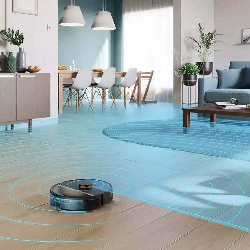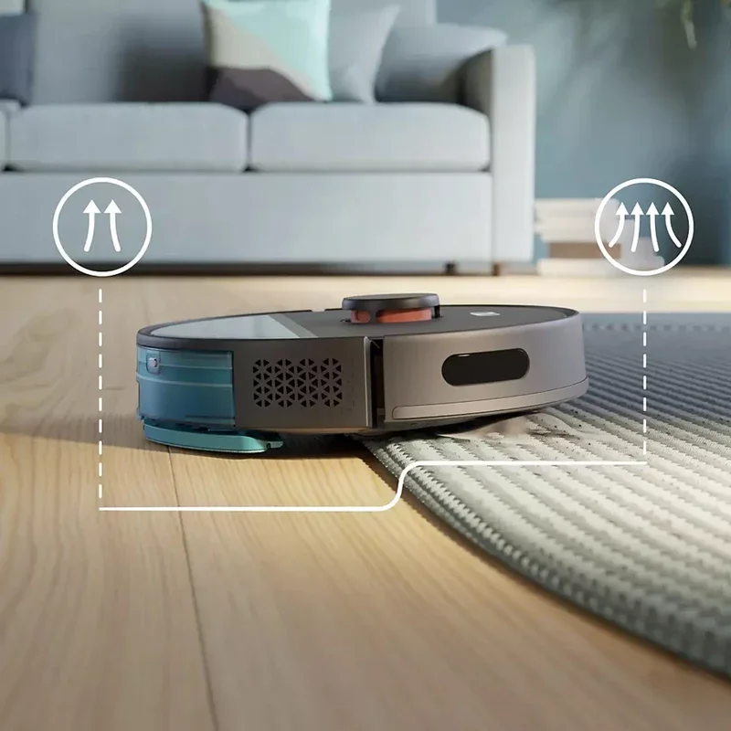 5. تشخیص و تنظیم خودکار قدرت مکش: این دستگاه به طور خودکار قدرت مکش خود را بر اساس نوع سطح (مثلاً فرش یا کف سخت) تنظیم میکند تا به بهترین عملکرد برسد.