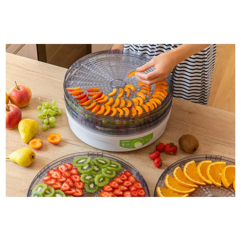 میوه خشک کن سنکور SFD 2105WH از جنس پلاستیک مرغوب و غیر قابل بو بوده و دارای ظاهری شیک میباشد. همچنین دارای 5 طبقه مجزا و زیبا بوده که هر طبقه حجم مناسبی را جهت خشک کردن دارا است. مهمترین مزیت میوه و سبزی خشک کن سنکور مدل SFD 2105 چندکاره بودن آن است. یعنی از این دستگاه علاوه بر خشک کردن میوه و سبزیجات قادر هستید، گوشت، مرغ، آجیل و هر نوع گیاه را به راحتی خشک کنید.