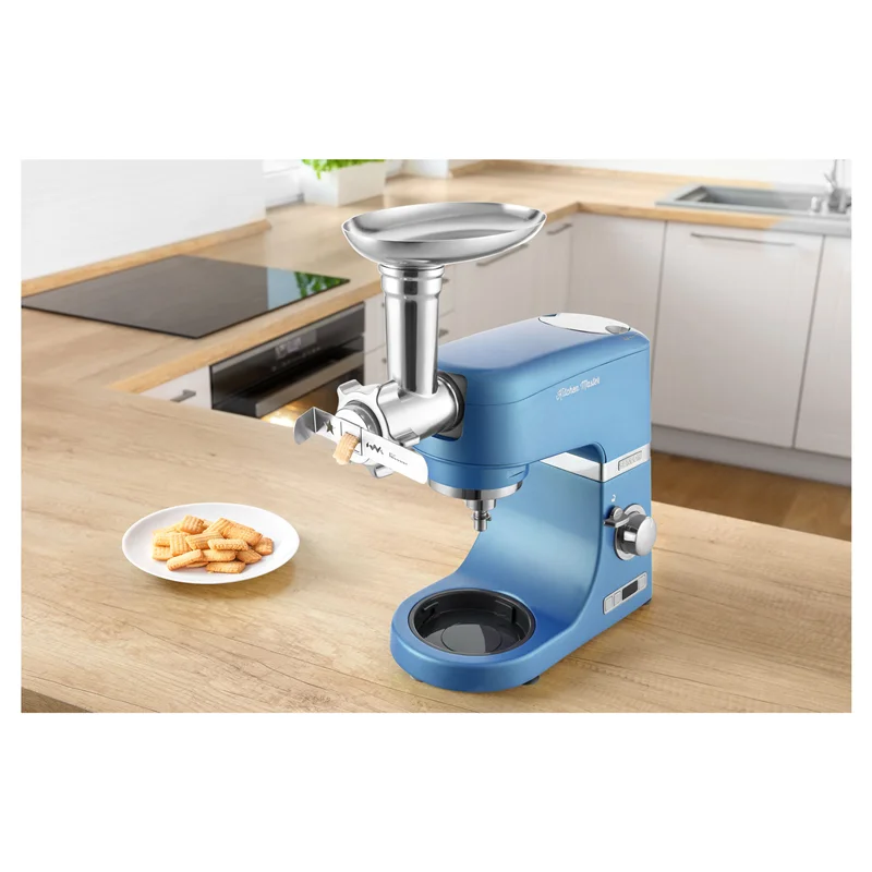 سر به طور همزمان در هر دو جهت می چرخد تا محتوای کاسه بدون توده کاملاً مخلوط شود ، در کاسه های فولادی ضد زنگ با کیفیت بالا و ظرفیت 4.5 و 3 لیتر ، که دو درب مفید دارد. یکی بستن ظروف در یخچال است و به لطف دیگری همیشه آشپزخانه تمیز خواهد ماند ، زیرا ظرف را پوشانده و محصولات غذایی را می توان از طریق دهانه خوراک در حین کار اضافه کرد. هر دو کاسه به اندازه کافی بزرگ هستند و می تواند در ظرف بزرگتر 2 کیلوگرم خمیر درست کند.