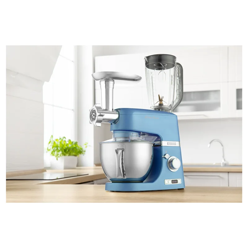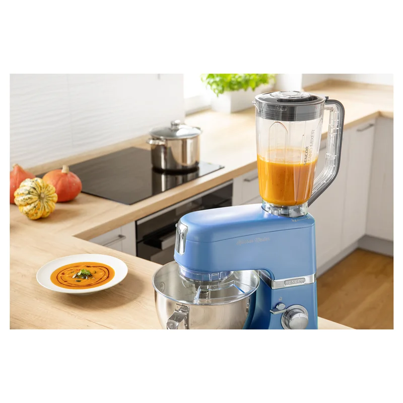 غذاساز سنکور مدل STM 7872BL دو ویژگی هوشمندانه دارد تا روند آماده سازی را برای کاربر آسان تر کند و بنابراین در برخی از زمان صرفه جویی می کند. در زیر کنترل کننده سرعت یک صفحه نمایش LED وجود دارد که زمانی را نشان می دهد که پس از شروع، شروع به شمارش معکوس می کند ، بنابراین شما همیشه می دانید که چه مدت کار می کند. اگر در حال ساخت خمیرهای مختلفی هستید که زمان مشخصی دارند ، از عملکرد تایمر استفاده کنید تا نیازی به جستجوی ساعت زنگ دار آشپزخانه به روشی پیچیده نداشته باشید. یک چراغ LED در کنار هد چند منظوره دارد که هر بار که هم می زند ، ورز می دهد یا می زند ، برای داشتن دید عالی در هر مرحله ، آن را روشن می شود.غذاساز سنکور مدل STM 7872BL سرعت را به صورت جداگانه با توجه به مواد آماده شده در هفت سرعت تنظیم می کند ، که می تواند حتی ضخیم ترین خمیر یا گوشت چرخ کرده را نیز با آن کار کند. کلید پالس حداکثر سرعتی را می دهد که می تواند در کسری از زمان برای کار موثر و سریع و حتی مخلوط شدن یخ به دست آورد.