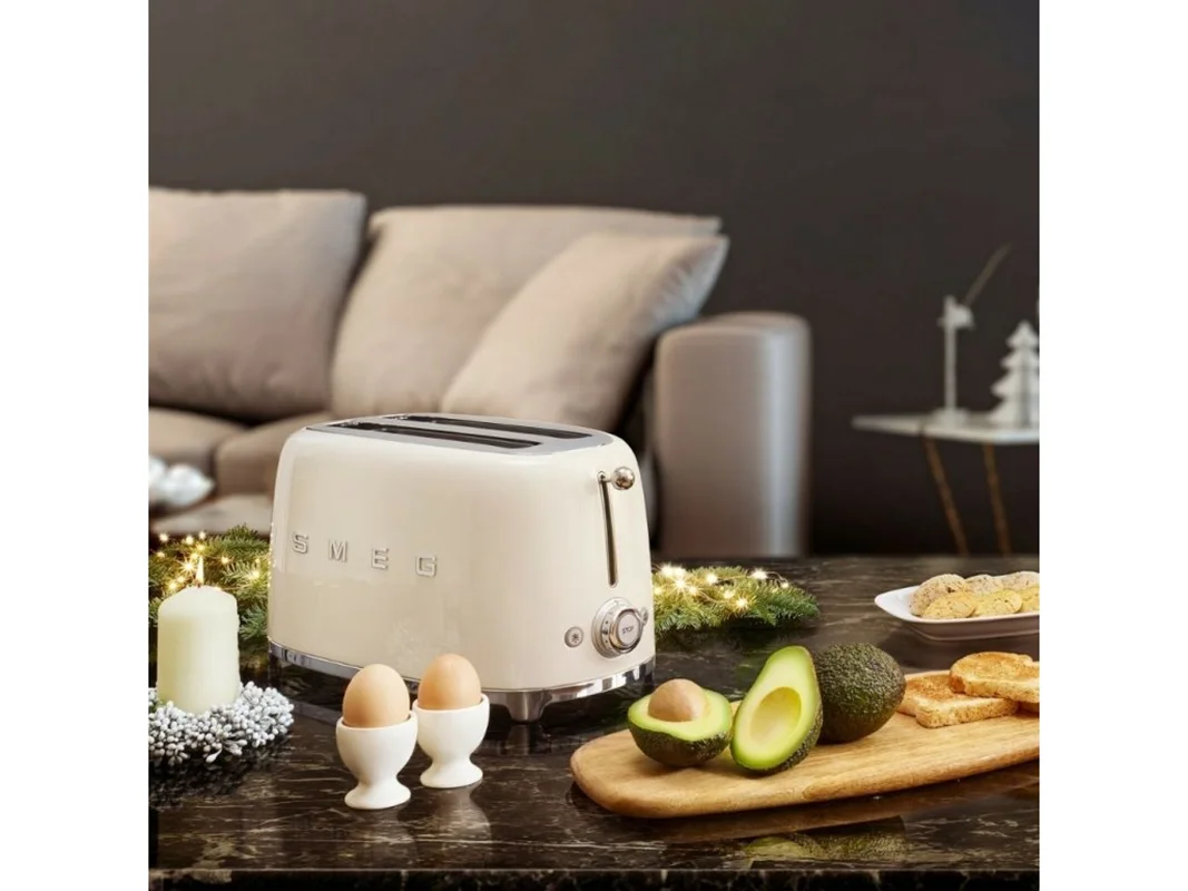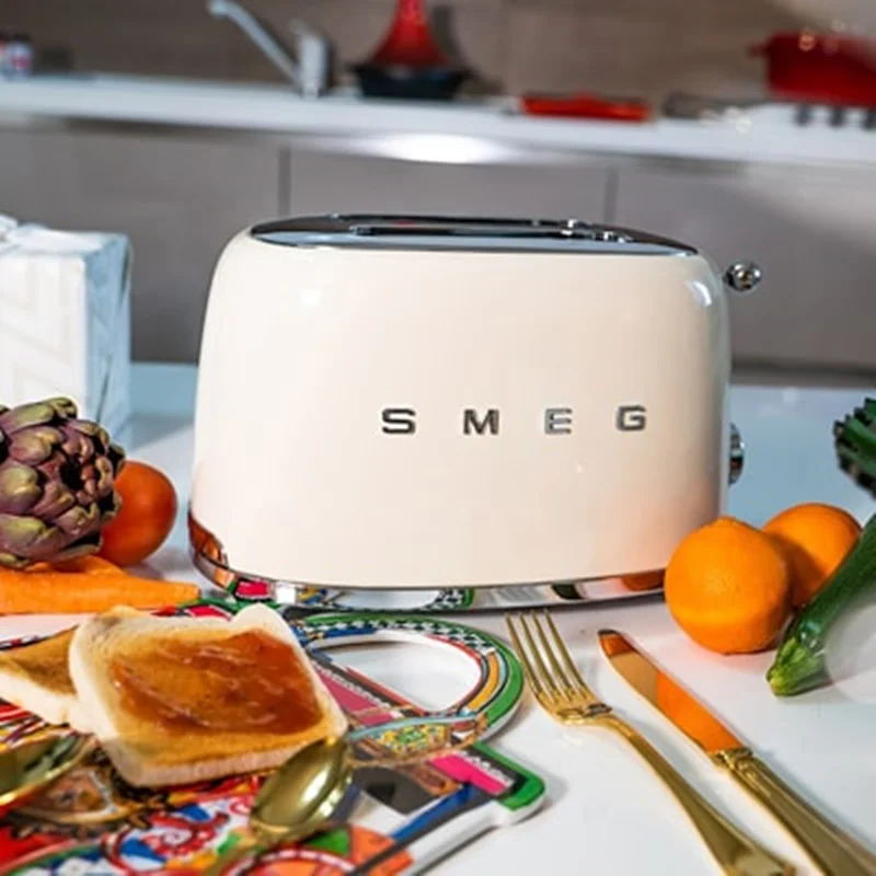 توستر Smeg مدل مدل TSF01CREU مجهز به عملکرد یخ زدایی نانهای توست فریز شده میباشد.شرکت اسمگ برای این توستر خوش ساخت ۶ حالت تنظیم حرارت را قرار داده است ویژگی دیگری که قابل ذکر است توقف عملیات در هر لحظه میباشد. توستر نان اسمگ را از استیل براق و جلا داده شده ساخته است. پایه پایههای ضد لغزش کمی بلند بوده و جریان هوا به خوبی از زیر دستگاه امکانپذیر است جنس این پایهها پلاستیک میباشد.