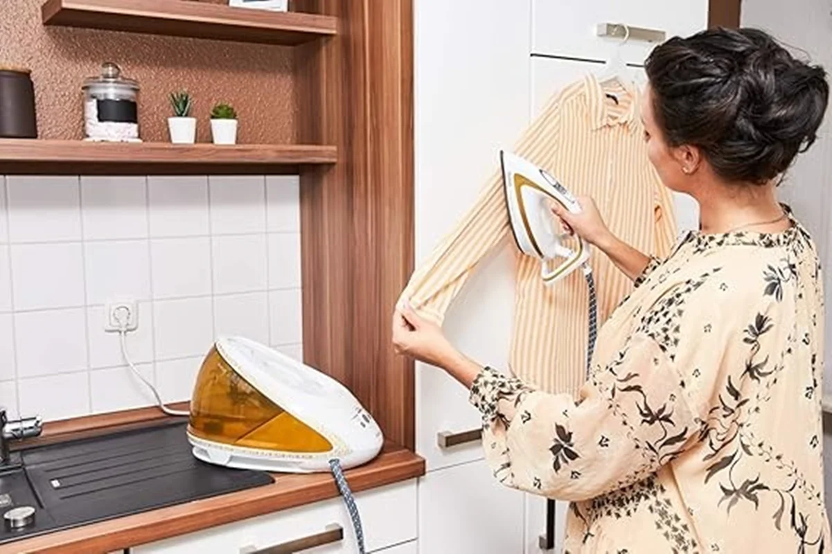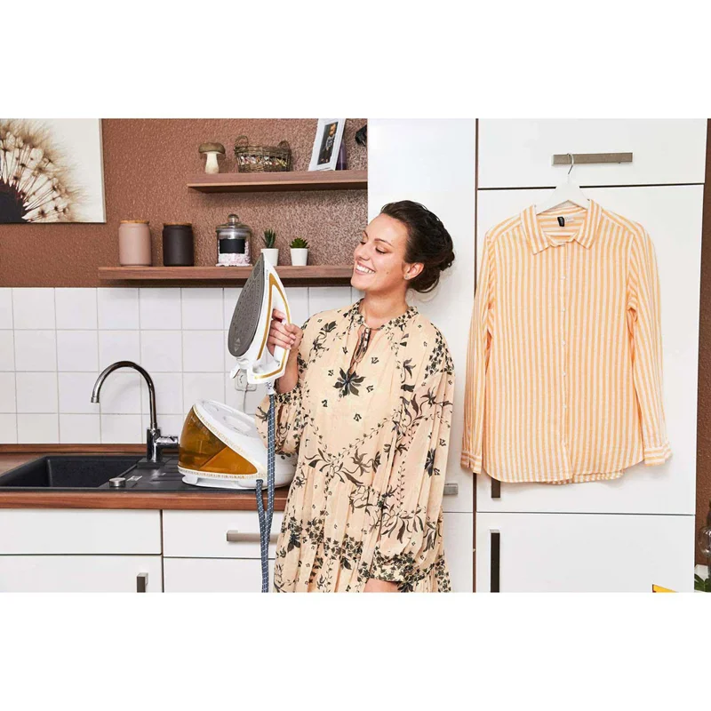 اتو بخار مخزن دار تفال مدل GV9581 دارای کفی بسیار با کیفیت از جنس سرامیک Durilium Airglide Autoclean با قابلیت تمیز شدن خودکار می باشد. کیفیت بسیار مناسب این کفی باعث می شود که اتو بر روی پارچه به راحتی حرکت کند و نتیجهی بسیار بهتری در اتو کردن داشته باشد. اتو تفال مدل GV9581 مجهز به سیستم خاموش شدن خودكار می باشد. گنجایش مخزن آب این اتو مخزن دار افکت تفال 1.9 لیتر می باشد که برای اتو کردن طولانی مدت جوابگو است و نیازی به پُر کردن مجدد مخزن در دفعات نمی باشد و این در صورتی است که پر کردن مخزن آب این دستگاه به سرعت و به راحتی امکان پذیر می باشد.